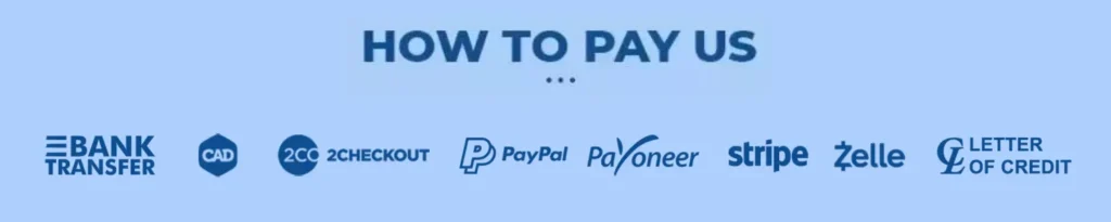 - You can ask for quotation in Euro & GBP or any other desired currency our bank accept.