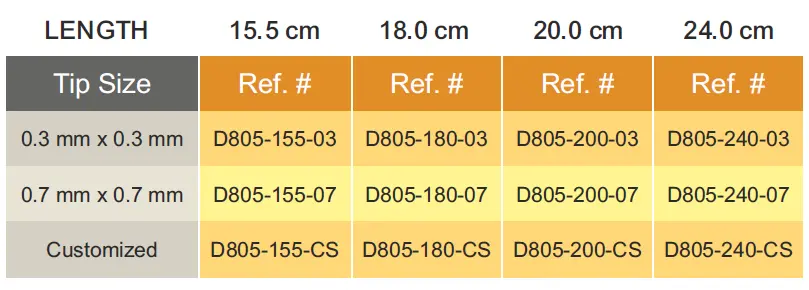 Tip Size: 0.3 x 0.3 mm | 0.7 x 0.7 mm | Customized