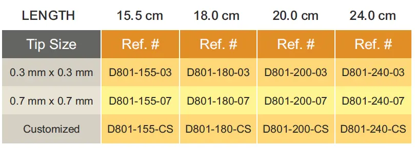 Tip Size: 0.3 x 0.3 mm | 0.7 x 0.7 mm | Customized