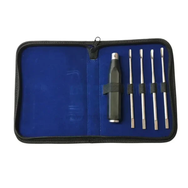 Equine Dental Extraction Elevators Teflon Handle Set of 4 in Zip Case, Equine Dental Elevators, Equine and Veterinary Dental Instruments, Dentistry Tools
