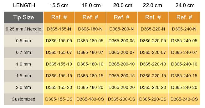 Tip Size: 0.25 mm / Needle | 0.5 mm | 0.7 mm | 1.0 mm | 1.5 mm | 21.6 mm | Customized
